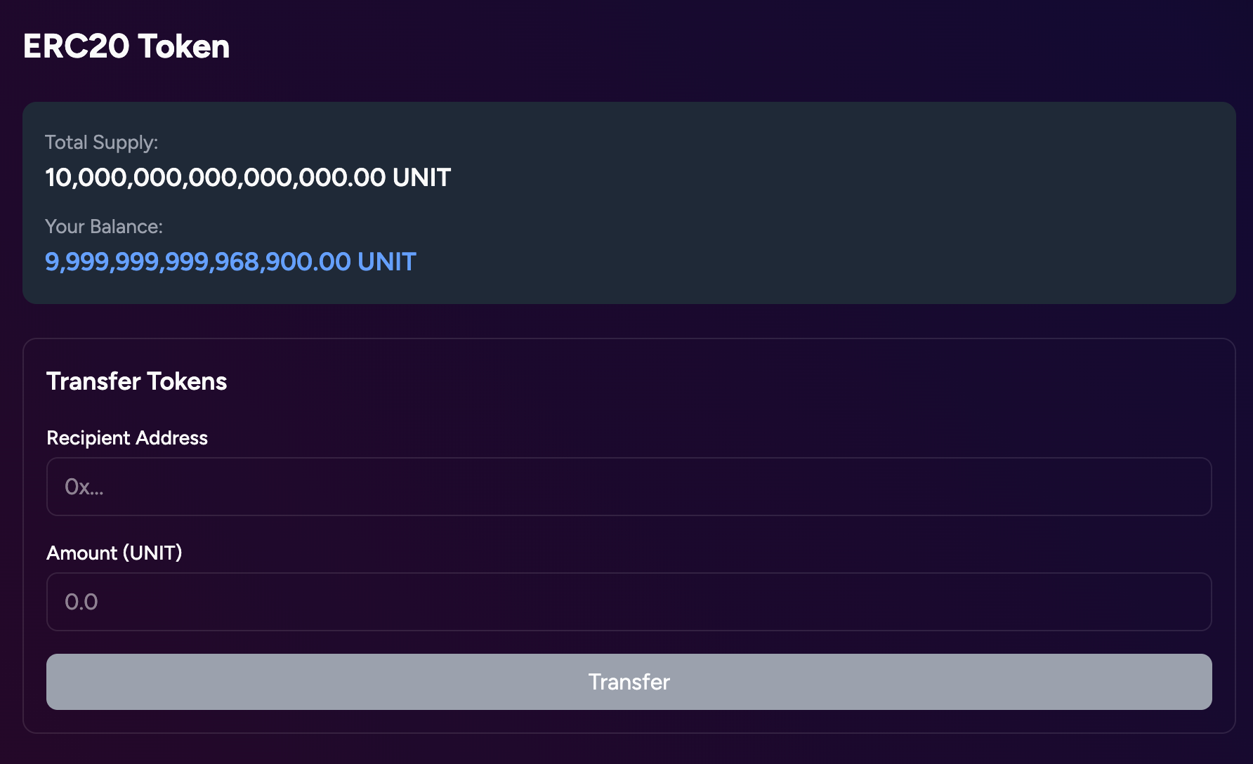 - Token transfer interface with real-time balance updates